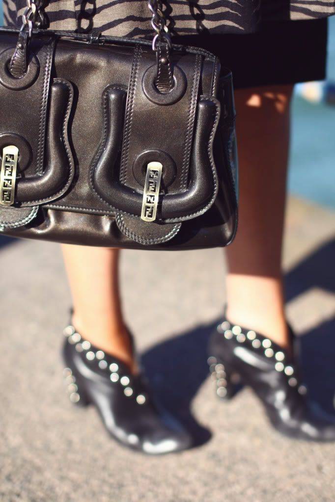 What I'm wearing: Hobbs Trench Coat, Russell & Bromley studded ankle boots and Fendi handbag.